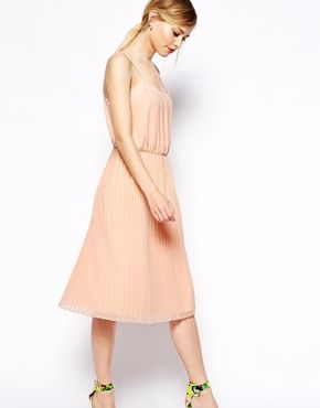 • ASOS - Robe patineuse mi-longue à bretelles et jupe plissée - Nude