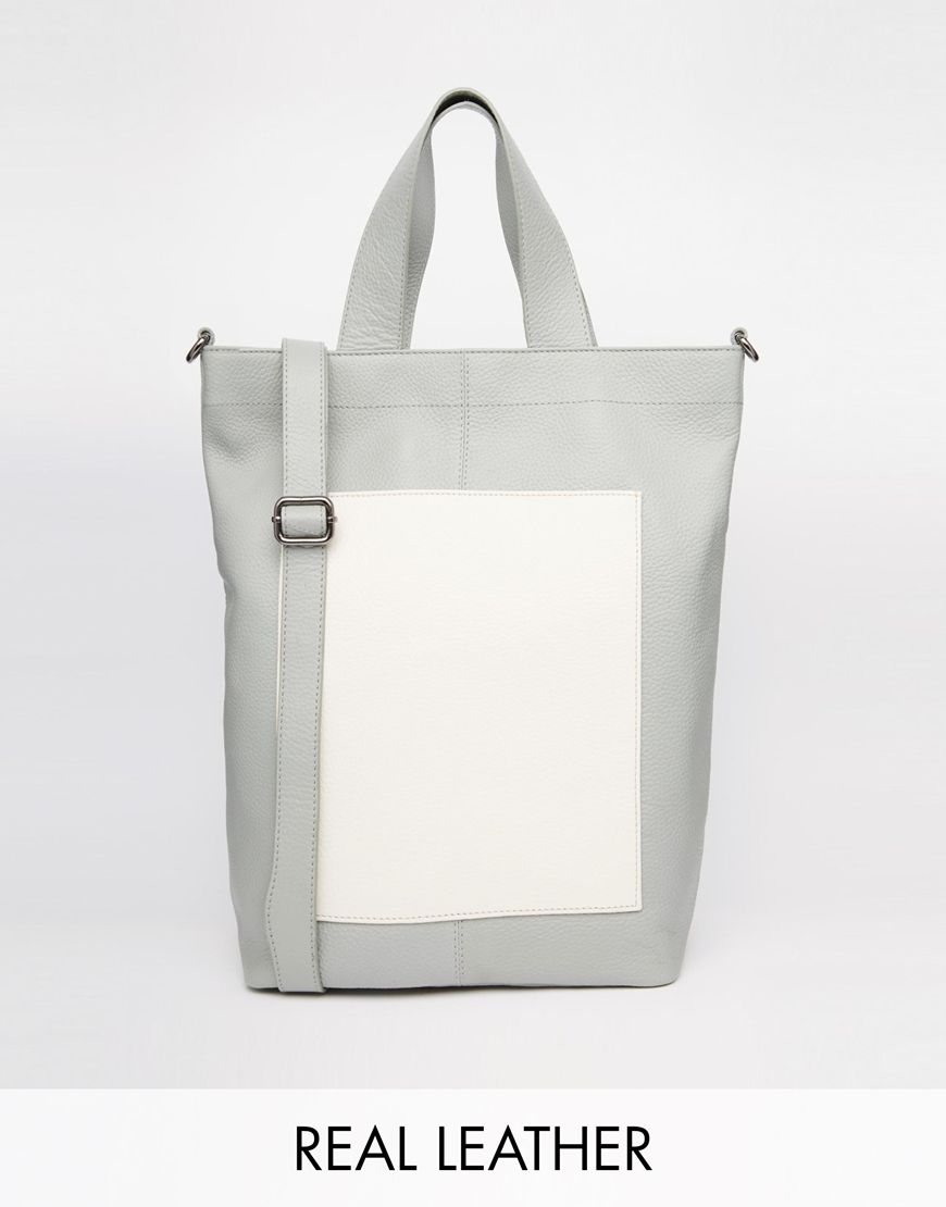 ASOS - Sac à main color block en cuir - Mélange gris
