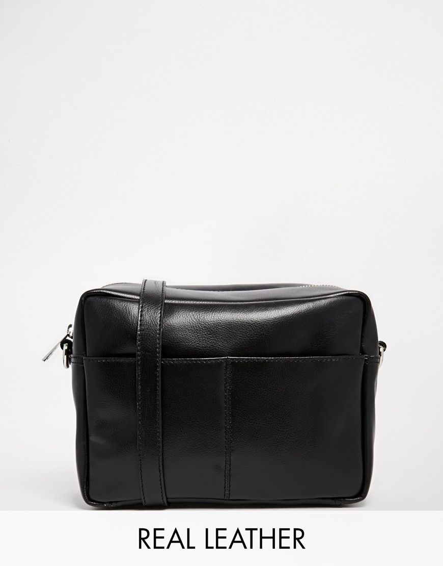 • ASOS - Sac bandoulière carré en cuir - Noir