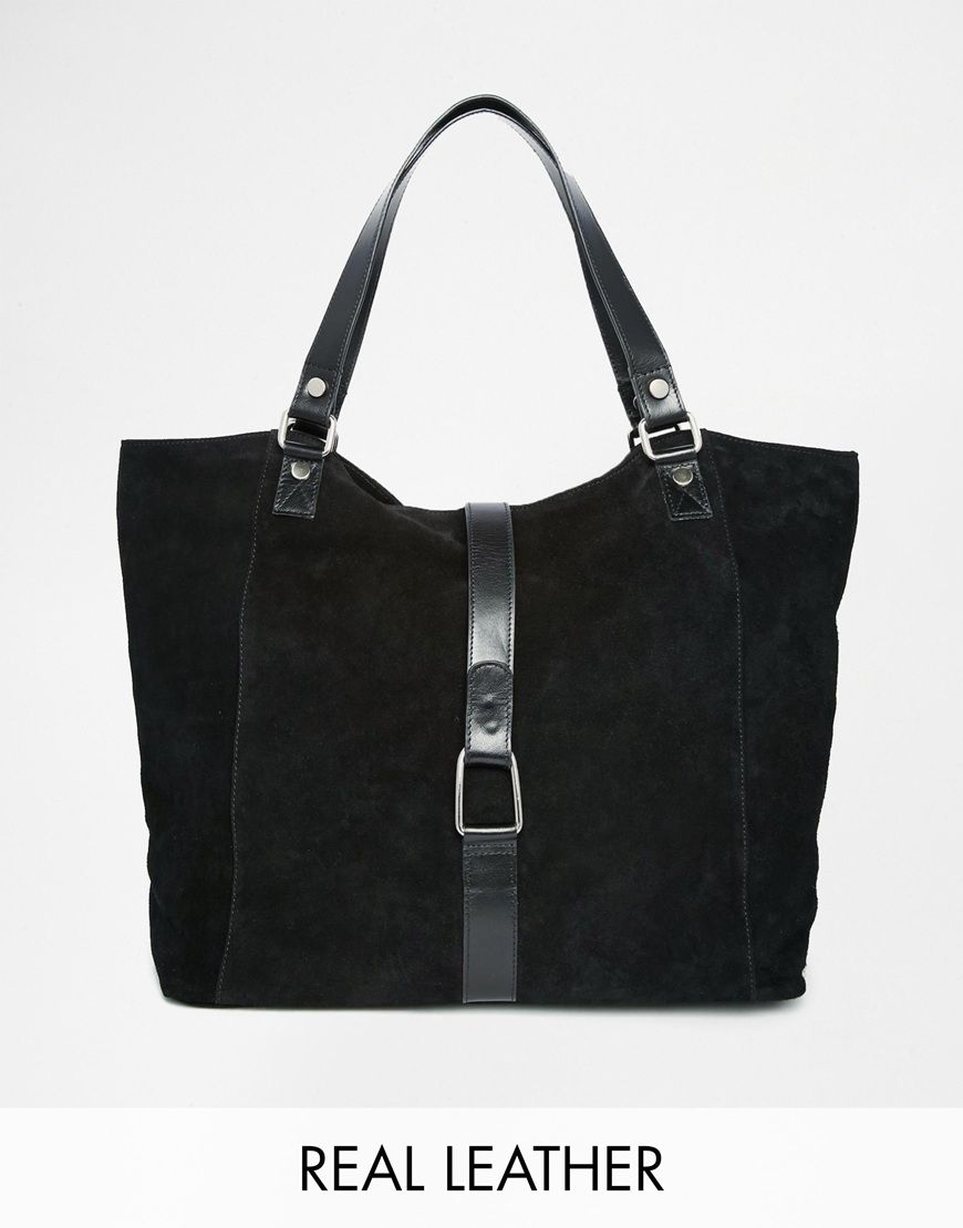 • ASOS - Sac portĂ© Ă©paule en daim avec sangle en cuir sur le devant - Noir
