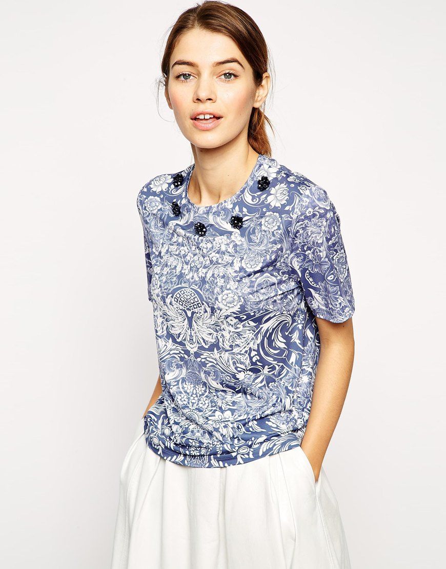 ASOS - T-shirt à imprimé filigrane et ornements - Bleu