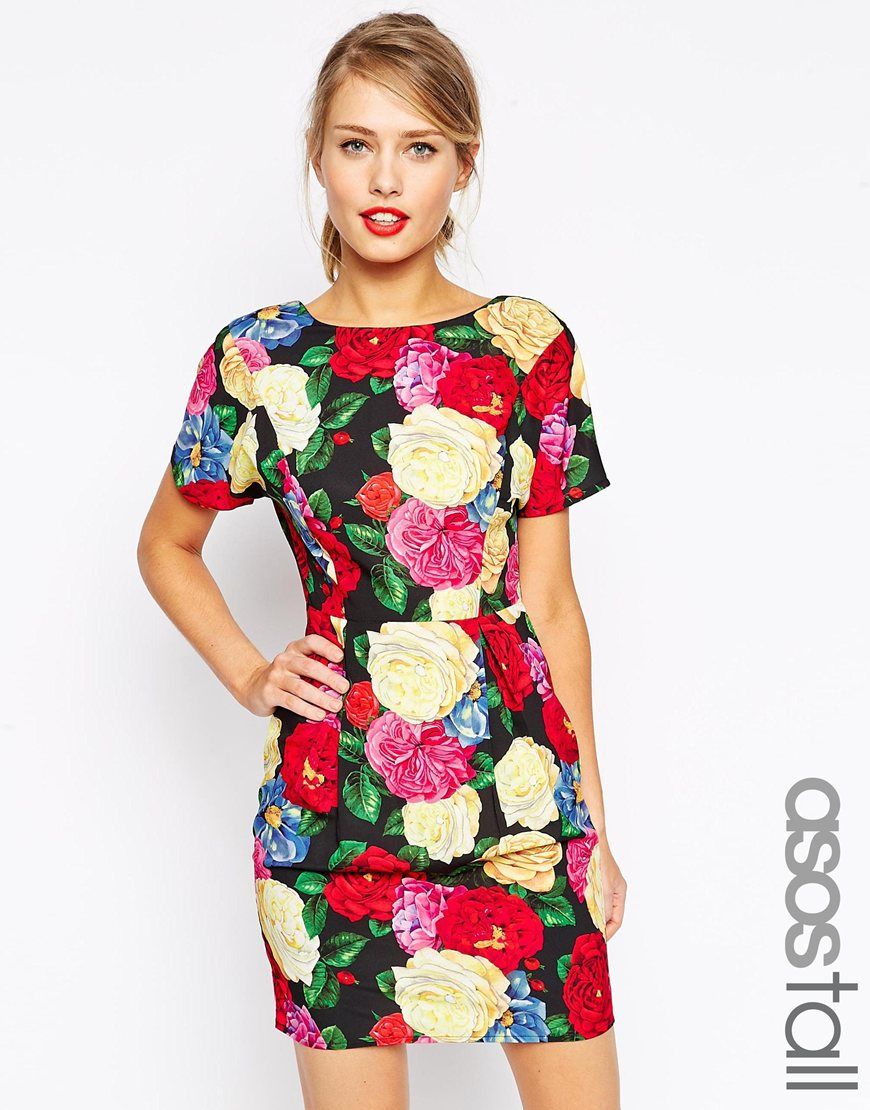 • ASOS TALL - Mini robe moulante imprimé roses - Imprimé fleuri