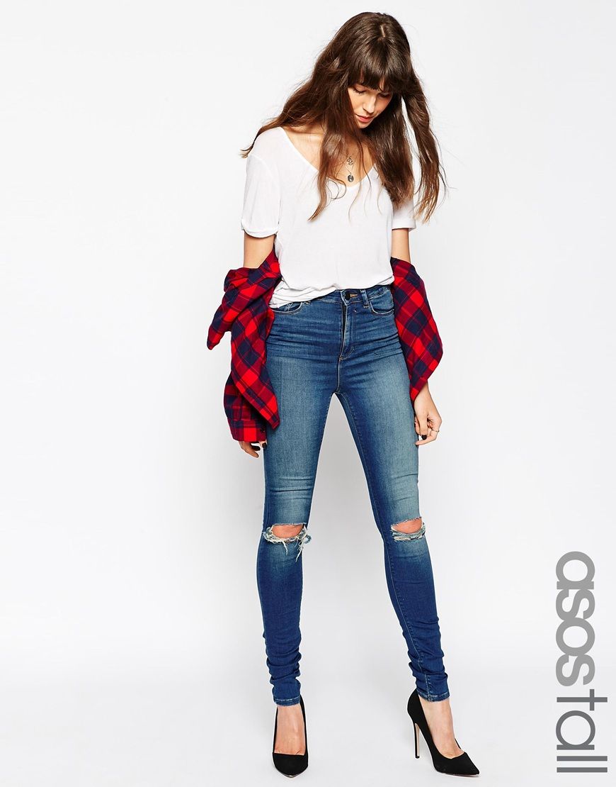 • ASOS TALL - Ridley - Jean ultra skinny taille haute à délavage Monroe et 2 déchirures aux genoux - Bleu Monroe