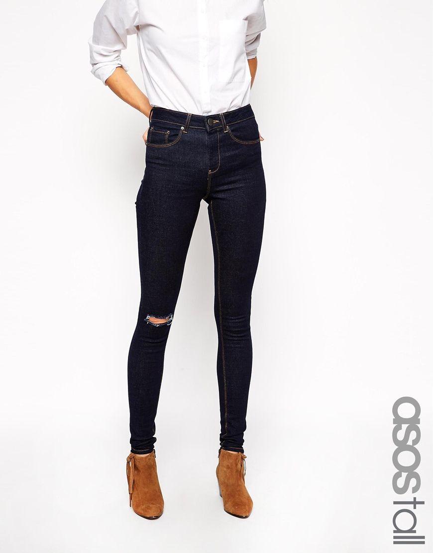 ASOS TALL - Ridley - Jean ultra skinny taille haute avec déchirures aux genoux - Bleu