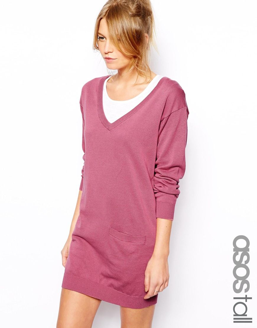 Achetez ASOS TALL - Robe en maille fine à col en V, robe ASOS Tall pour femme sur Pickture, dans les tendances ASOS, Robe, maille, Violet