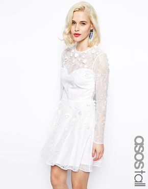 Achetez ASOS TALL - Robe patineuse ornée de dentelle à, robe ASOS Tall pour femme sur Pickture, dans les tendances ASOS, Robe, dentelle, fleurs, Ivoire