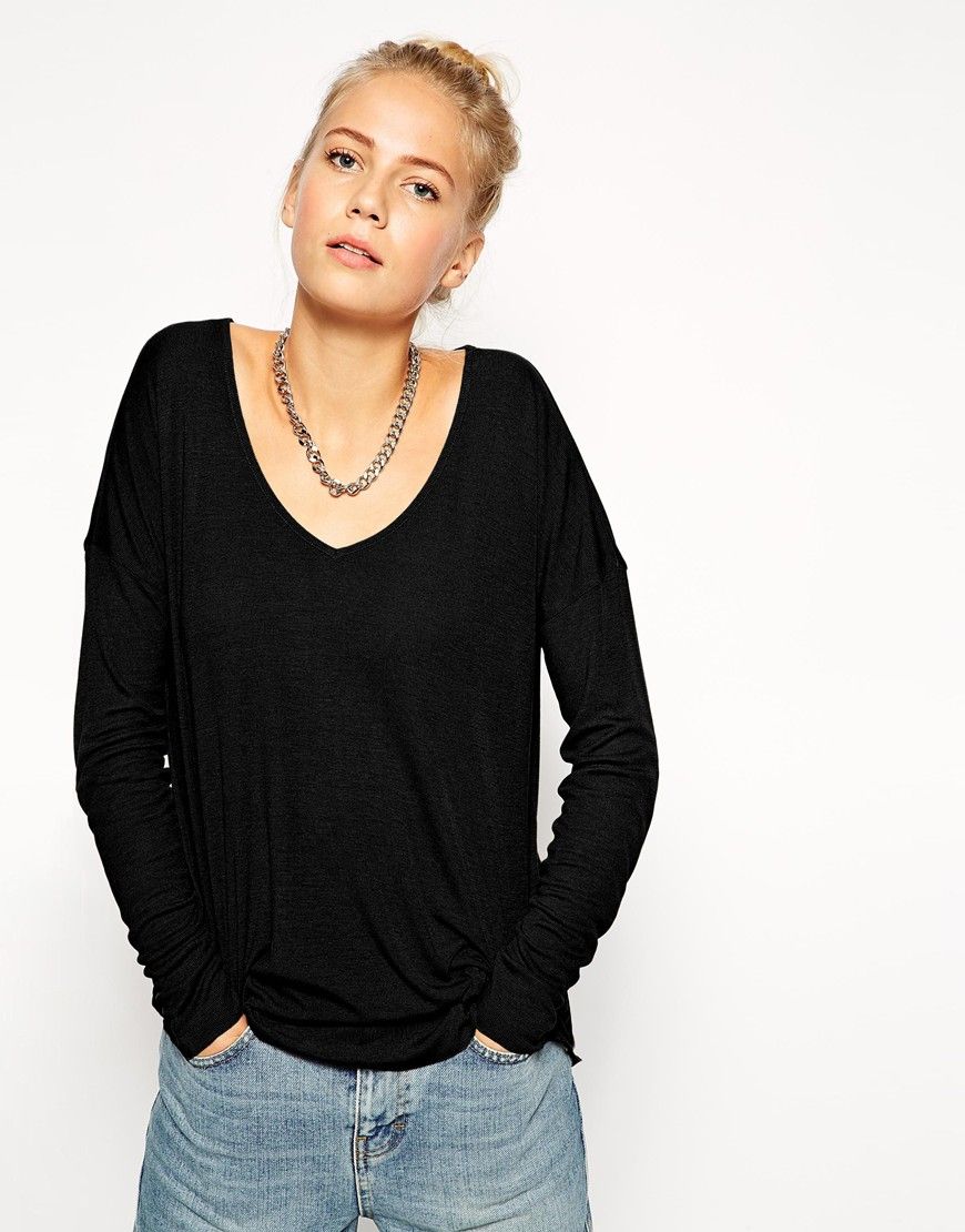 • ASOS - Top avec encolure en V et ourlet cĂ´telĂ© arrondi - Blanc