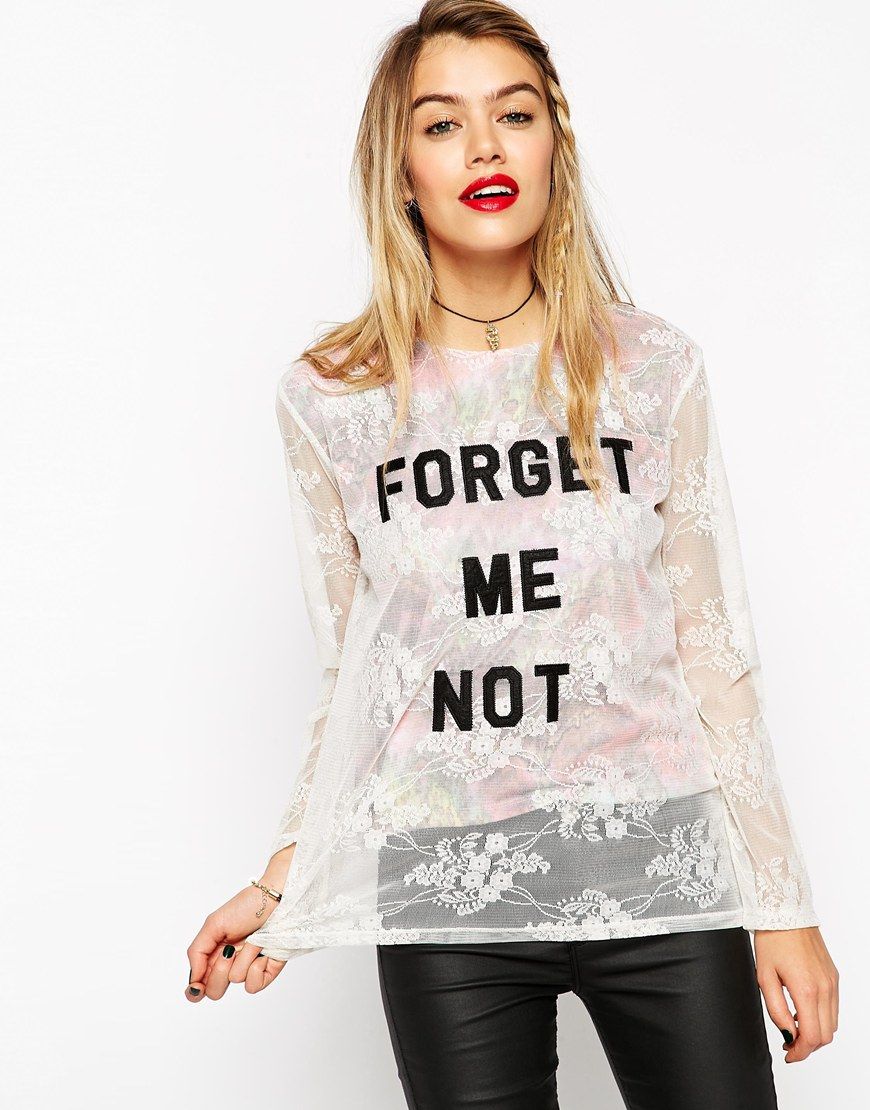 • ASOS - Top double épaisseur avec dentelle à fleurs et imprimé « Forget Me Not » - Multi