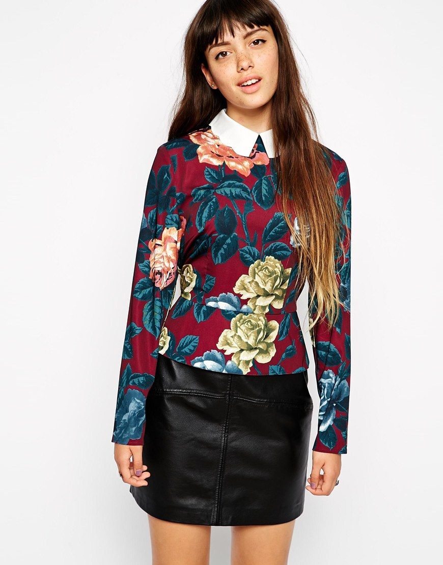 ASOS - Top imprimé à fleurs avec col contrastant - Multi