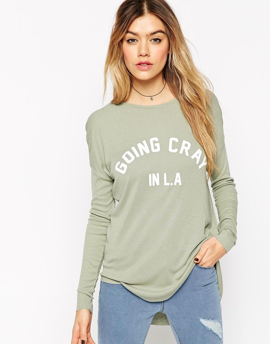 • ASOS - Top imprimé « Going Cray In LA » - Kaki