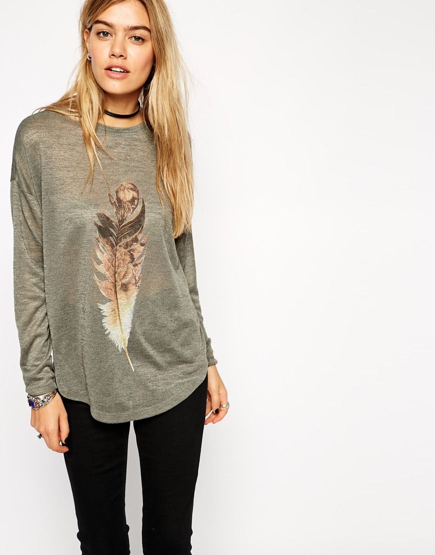 Achetez ASOS - Top texturé à imprimé plumes et manches, top Asos pour femme sur Pickture, dans les tendances ASOS, Top, Noir