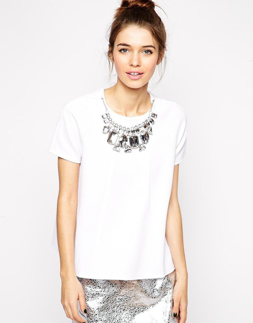 • ASOS - Top texturé avec collier à grosses pierreries - Blanc