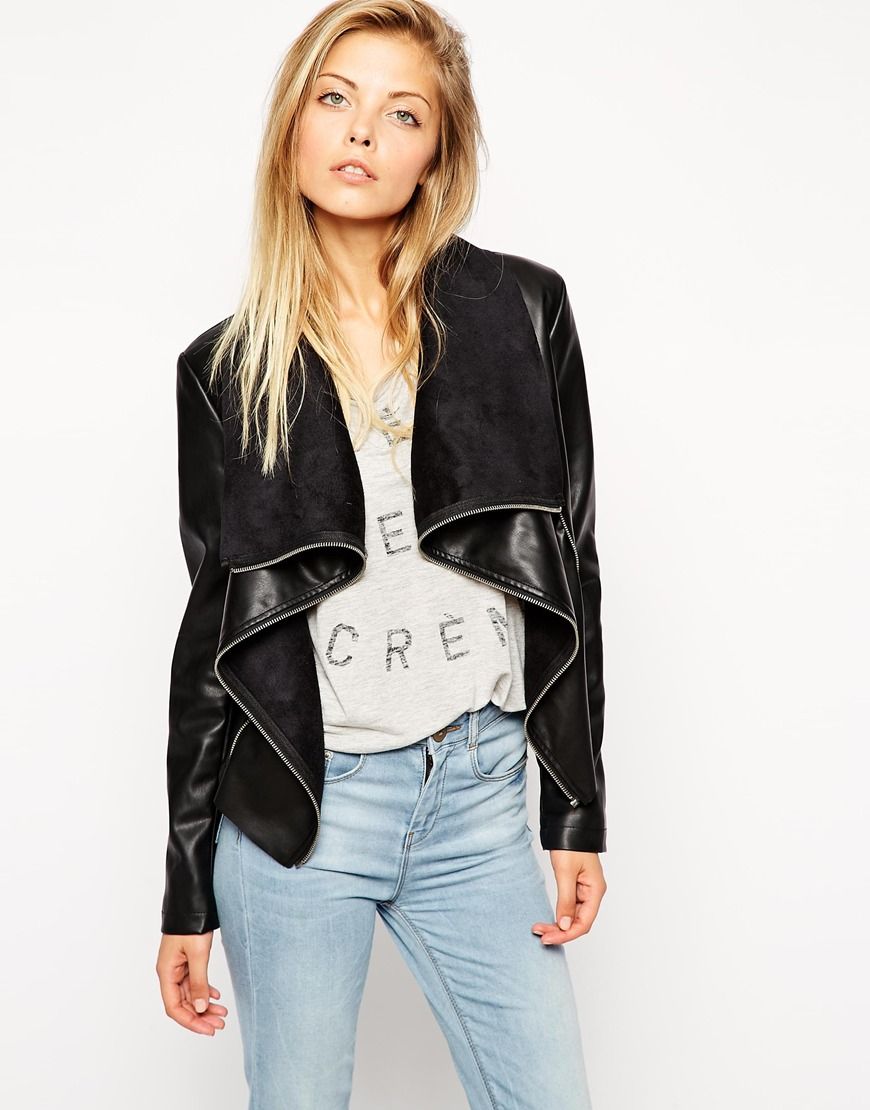 ASOS - Veste en similicuir à effet cascade sur le devant - Noir