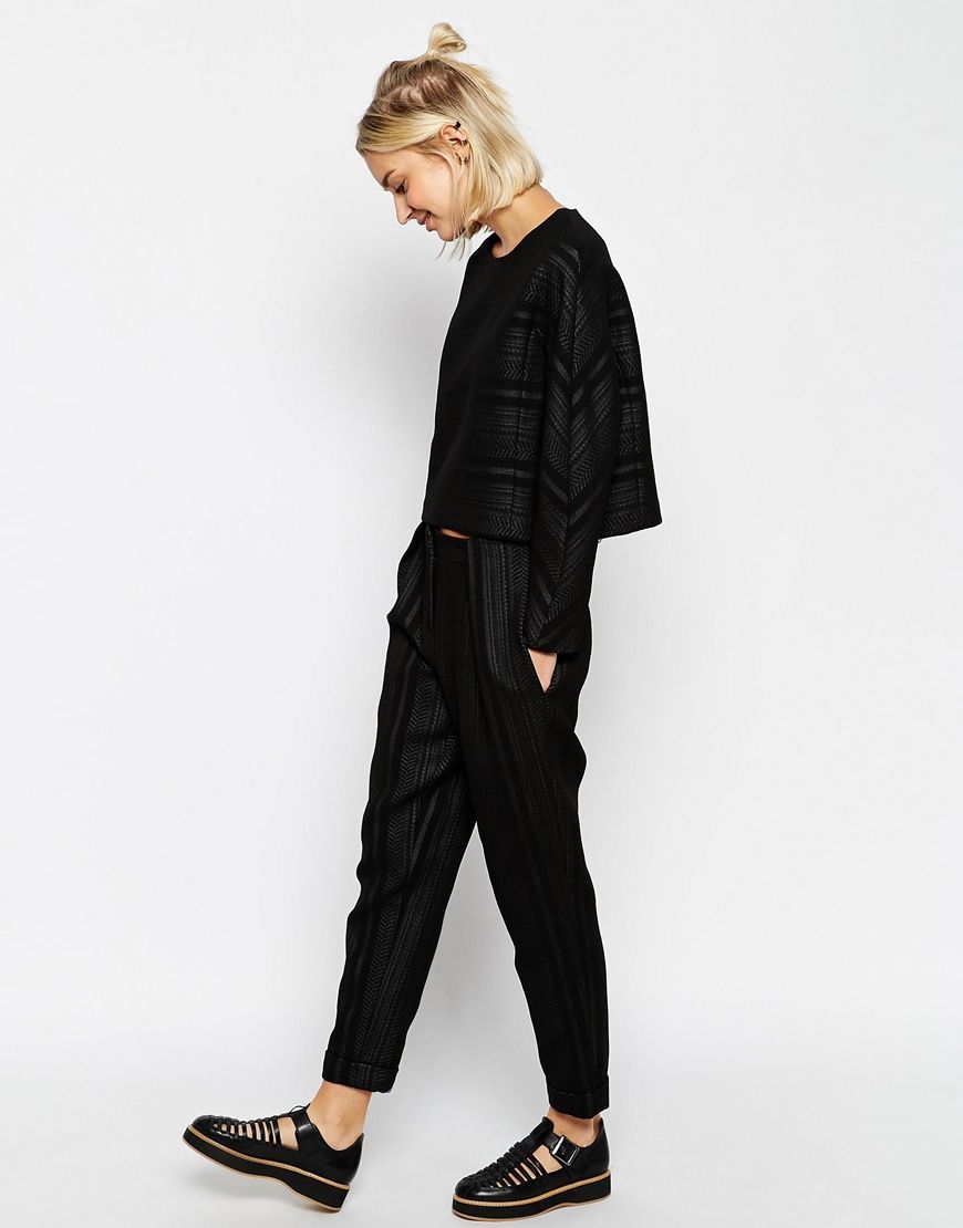 ASOS WHITE - Pantalon en mousseline thermocollée avec nervure sur le devant - Noir