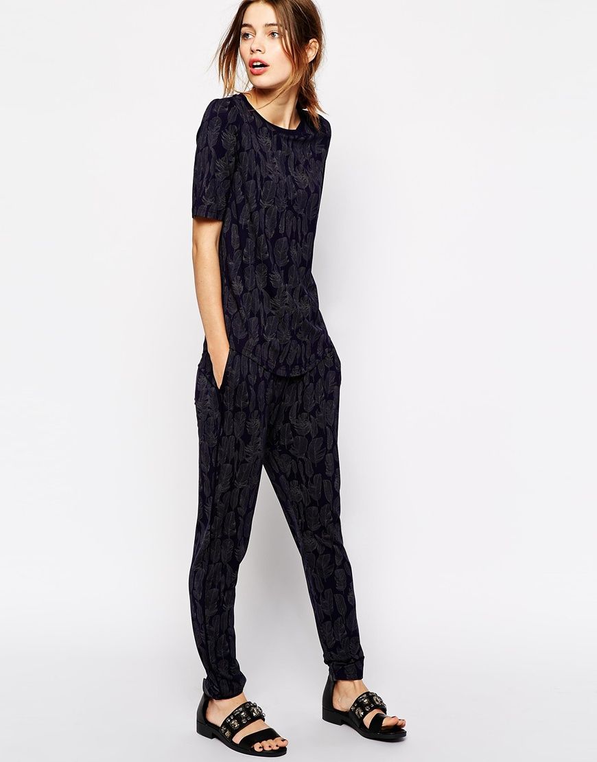 Baum und Pferdgarten - Edria - Pantalon à imprimé plumes - Bleu marine