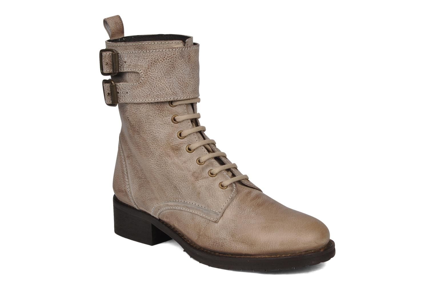 Bottines Georgia Rose Binga pour femme, en cuir, à bout rond, fermées par des lacets et 2 boucles, montées sur une semelle de caoutchouc, avec un talon de 3,5 cm. Habillées de cuir talqué pour un effet vieilli, parées d’un laçage retro surmonté de sangles rock, les Binga par Georgia Rose réinterprètent de manière très actuelle la tendance godillot. La semelle intérieure est non amovible. Les mesures sont réalisées sur une pointure 38.