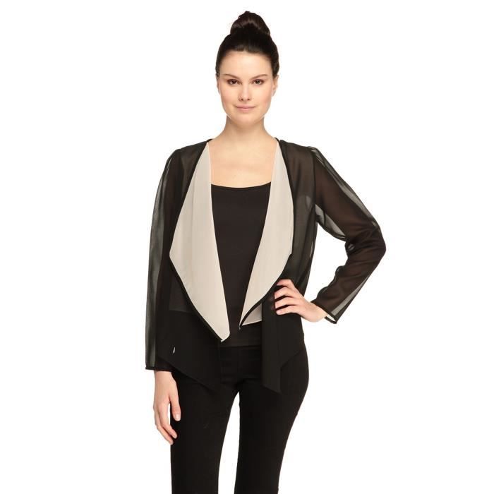 Veste en voile, 100 % polyester, noir et beige. Manches longues, base asymétrique, fente au dos.