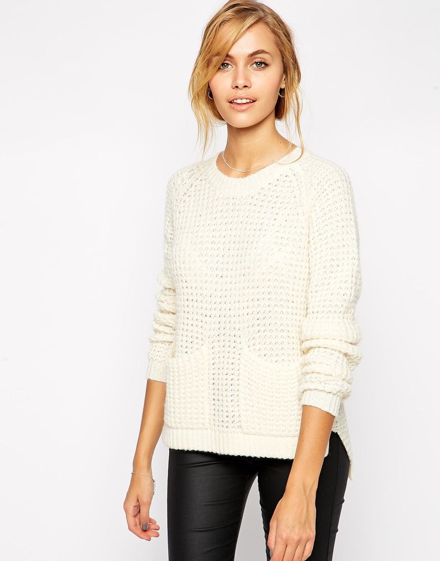 • By Zoe - Pull manches longues à poches sur le devant - Ecru