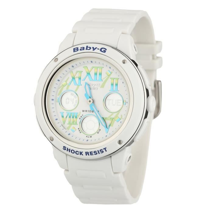 Montre en résine sur un bracelet de coloris blanc. Cadran noir doté d'un affichage digital et analogique. Mouvement quartz. Montre résistant a une pression de 10 Atm.