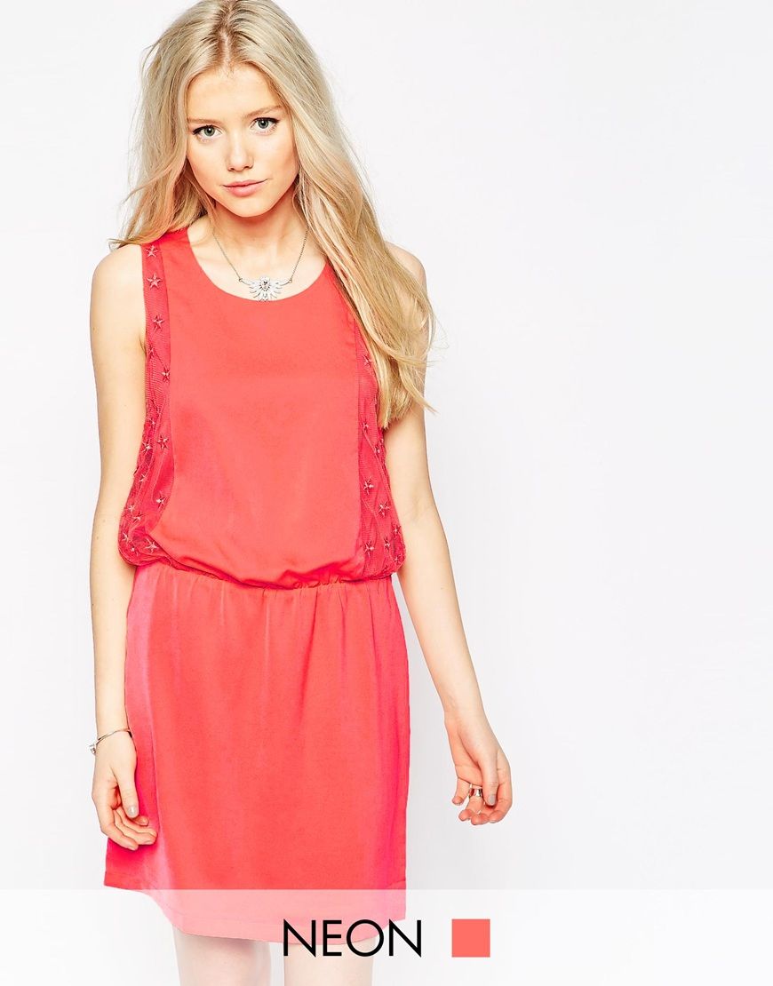 Colorblock - Robe avec dentelle à motif étoiles - Rose