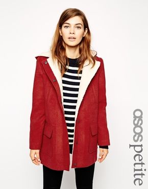 • Exclusivité ASOS PETITE - Parka en laine avec empiècements - Rouge