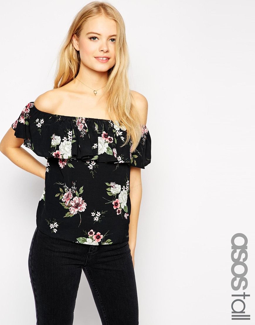• Exclusivité ASOS TALL - Top à épaules dénudées - Imprimer