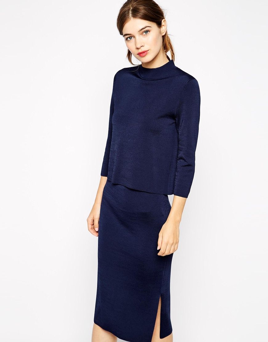 • Ganny - Pull de coupe carrée à col montant - Robe blues