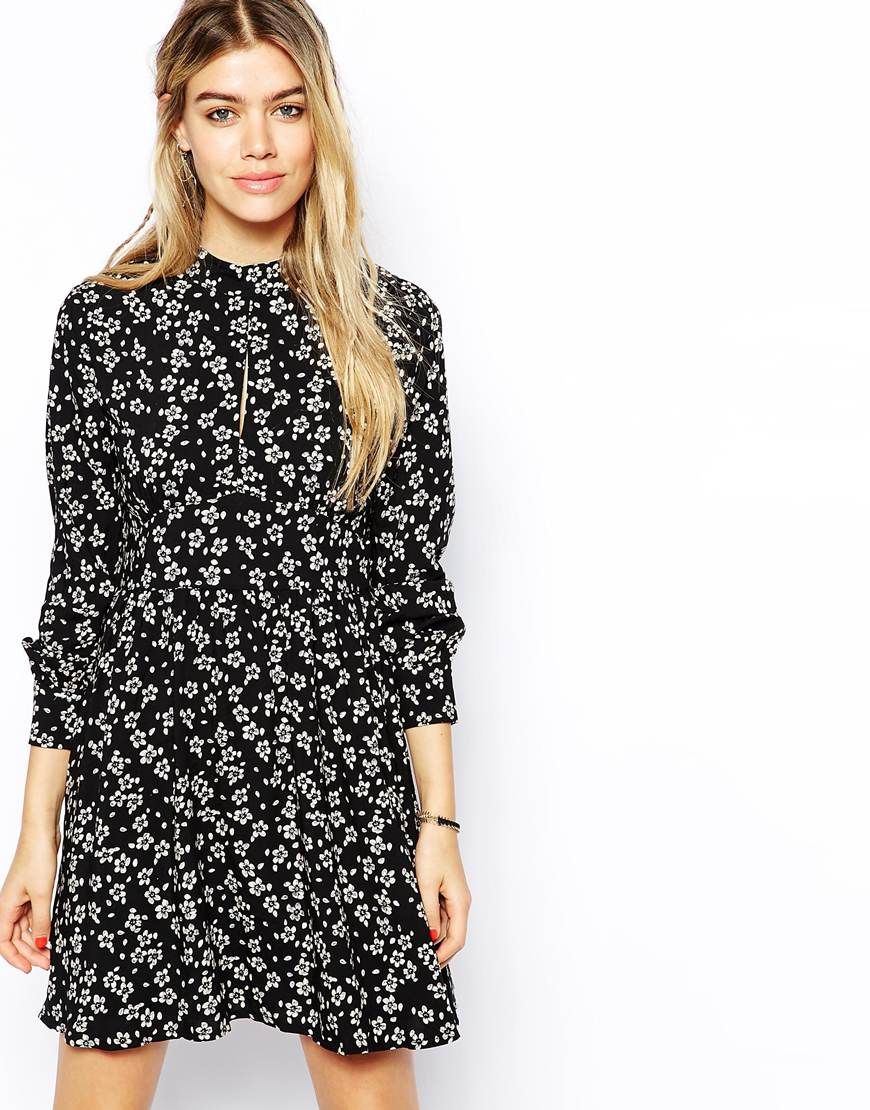 Glamorous - - Robe patineuse à imprimé petites fleurs et encolure montante - Multi