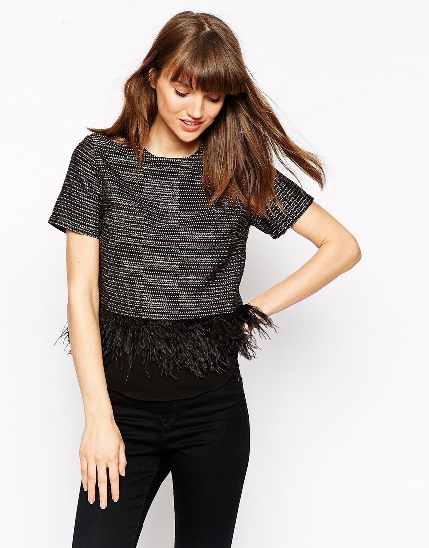 Greylin - Czar - Top en tweed orné de plumes - Noir