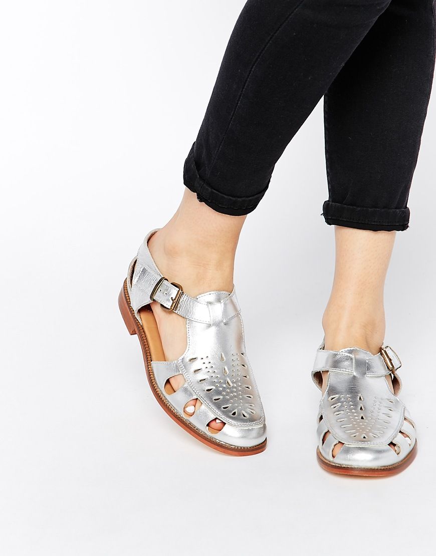 • H by Hudson - Sherbert - Chaussures plates en cuir ajourĂ© - ArgentĂ© - ArgentĂ©