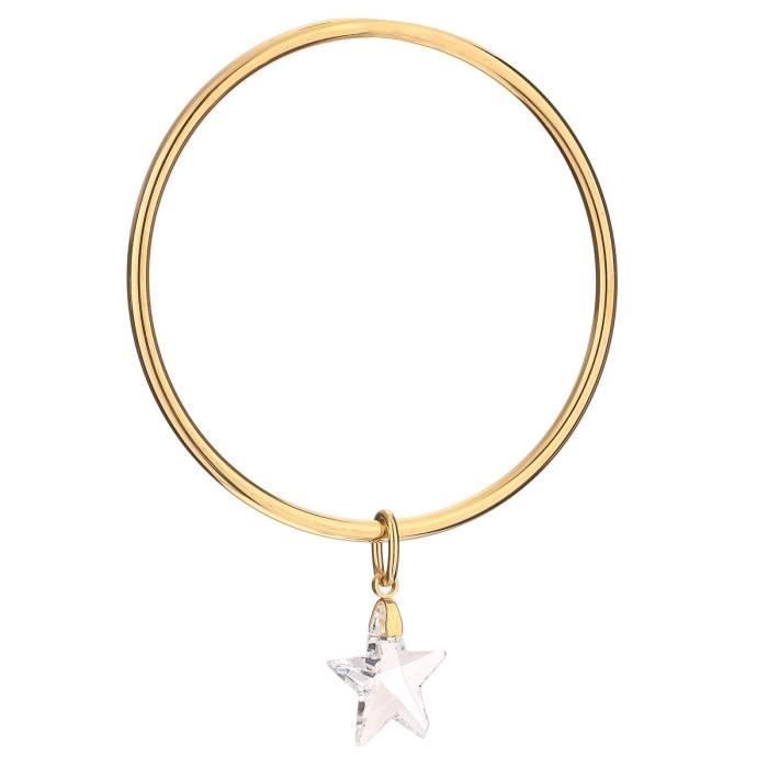 Bracelet jonc en acier inoxydable doré orné d'une pierre en forme d'étoile. Cristal de SWAROVSKI ELEMENTS blanc