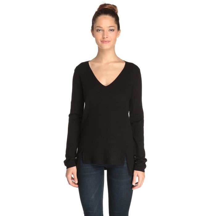 Pull col V, 51 % polyamide, 49 % viscose, noir. Maille jersey, manches longues.