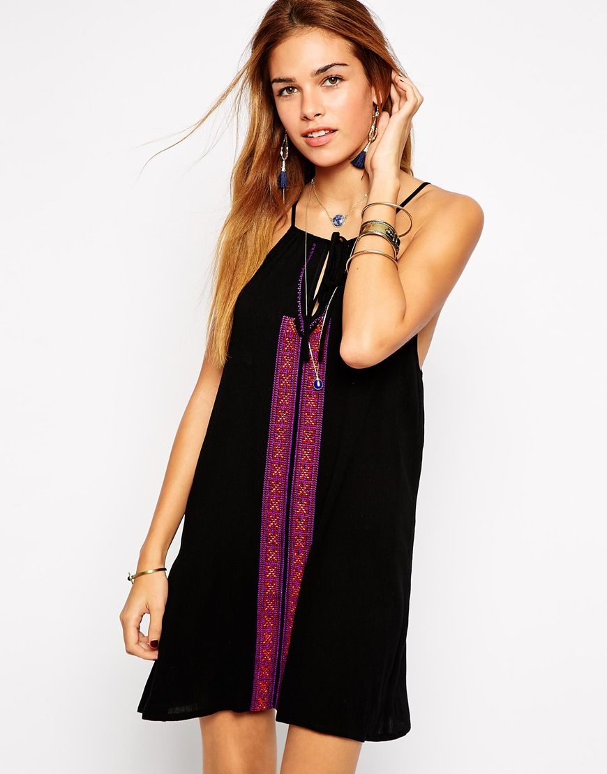 Achetez Kiss The Sky - Robe caraco brodée coupe trapèze, robe Kiss The Sky pour femme sur Pickture, dans les tendances The, Robe, Noir