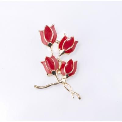 Laissez-vous séduire par la beauté de cette broche représentant des tulipes rouges et...