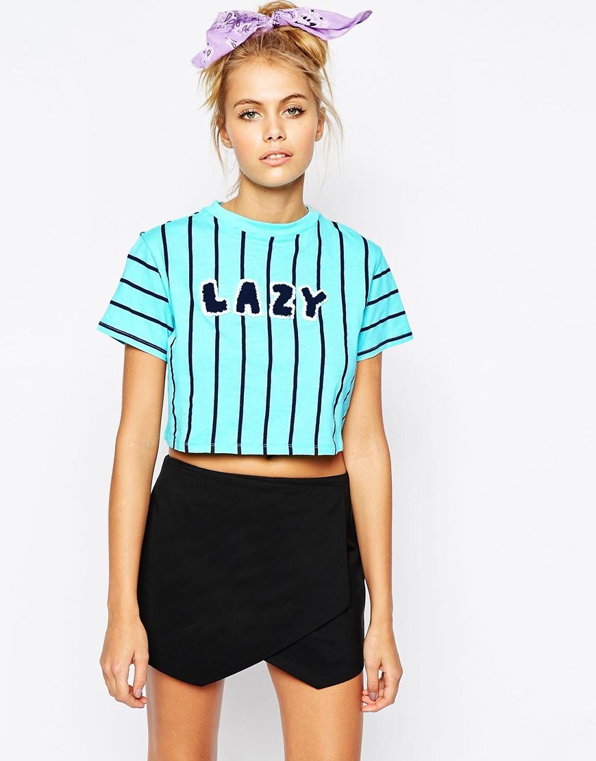 • Lazy Oaf - Lazy - T-shirt court rayé avec logo - Bleu
