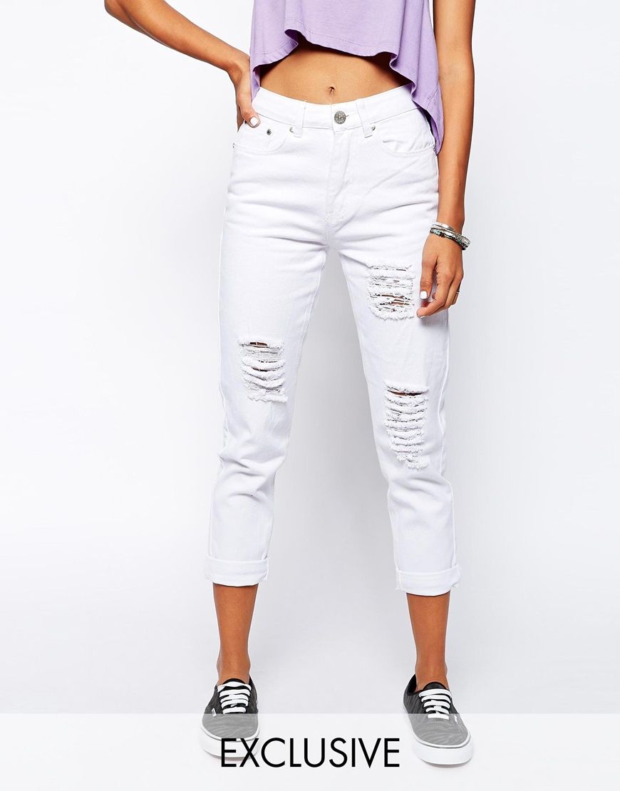 Liquor & Poker - Jean mom avec nombreuses déchirures effet vieilli - Blanc