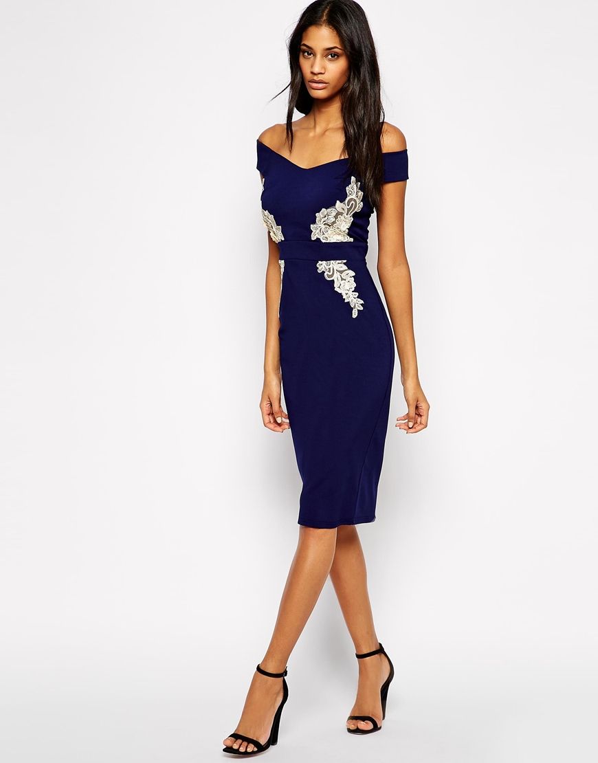 Achetez Little Mistress - Robe fourreau à épaules, robe Little Mistress pour femme sur Pickture, dans les tendances Robe, fleurs, Bleu, marine