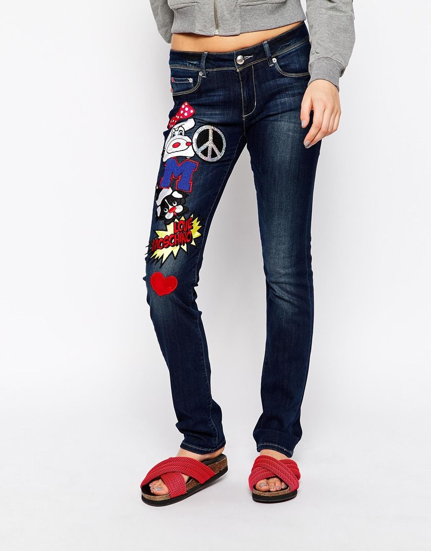 Love Moschino - Jean skinny à étiquette logo - Bleu