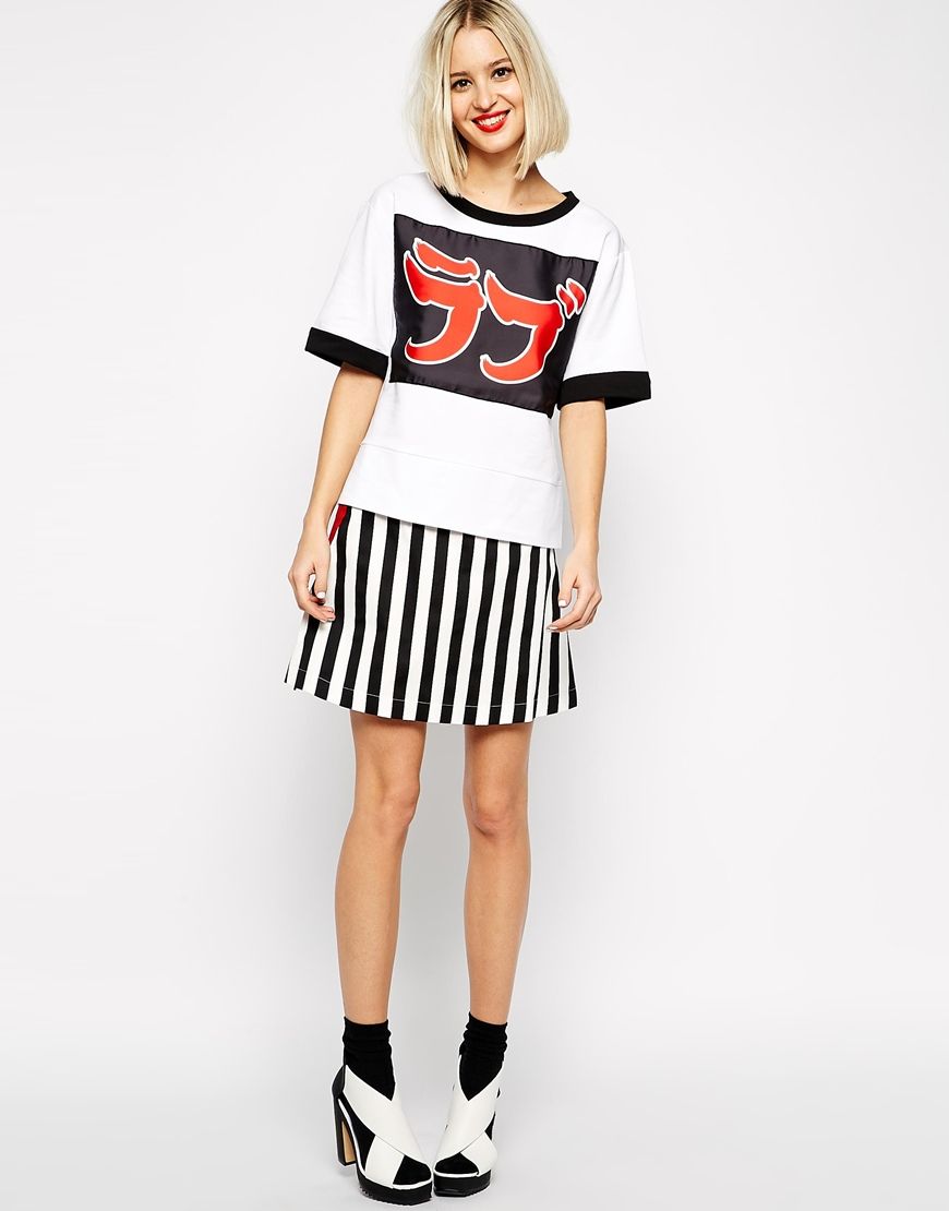 • Love Moschino - Minijupe rayĂ©e avec dĂ©tails zippĂ©s rouges sur le cĂ´tĂ©
