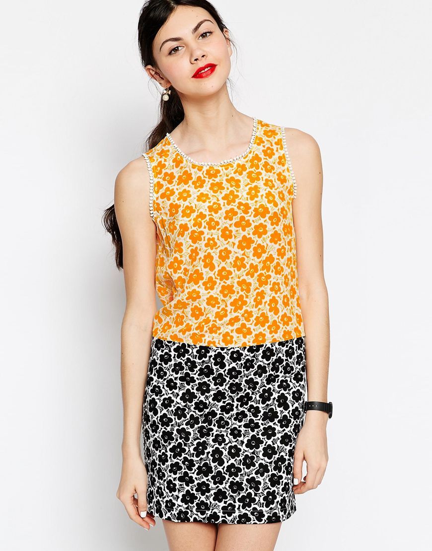 Love Moschino - Robe fleurie en soie mélangée avec jupe noire contrastée - Multi