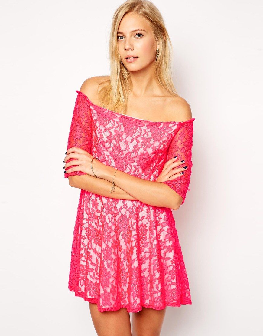 Love - Robe en dentelle à épaules dénudées - Rose fluo