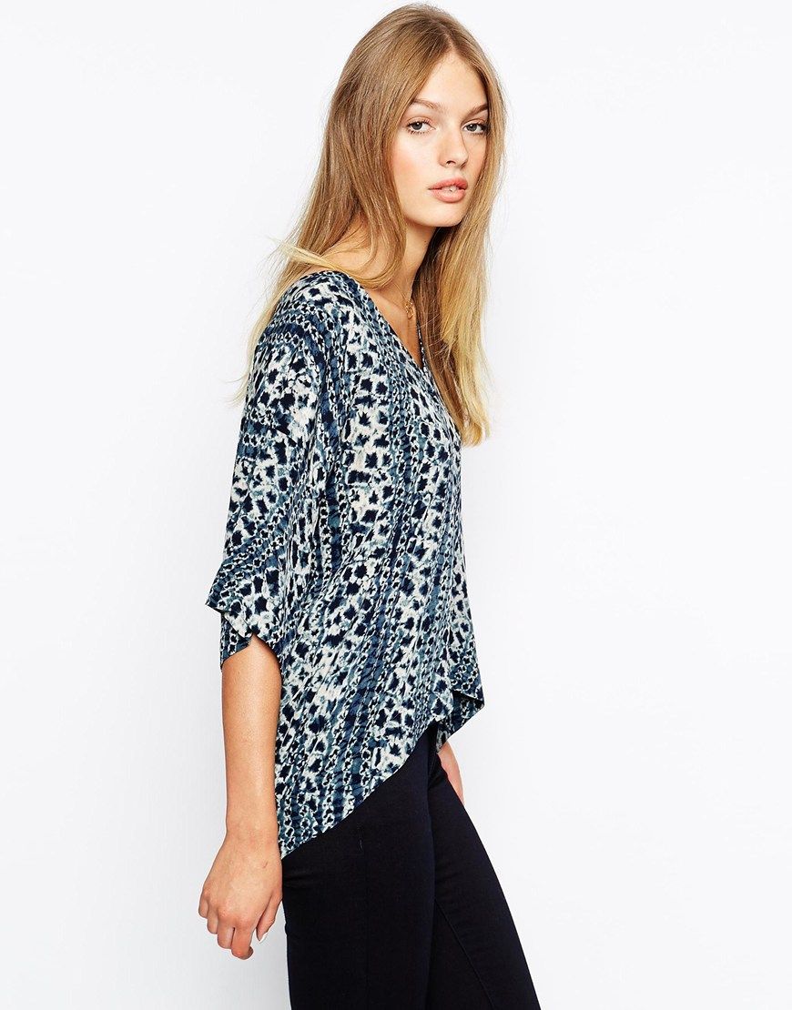 Mih Jeans - Top de festival à col en V façon poncho oversize - Bleu