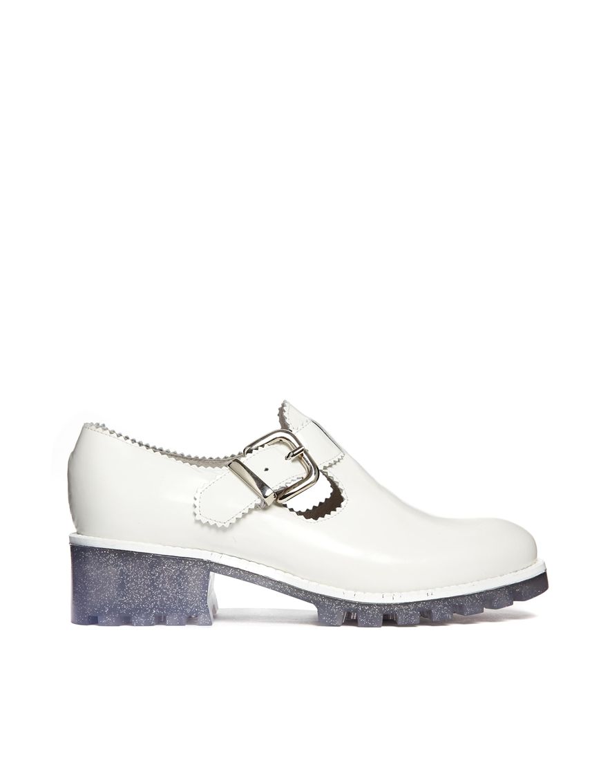 • Miista - Alyssa - Chaussures plates en cuir avec semelle en plastique souple pailletée - Blanc