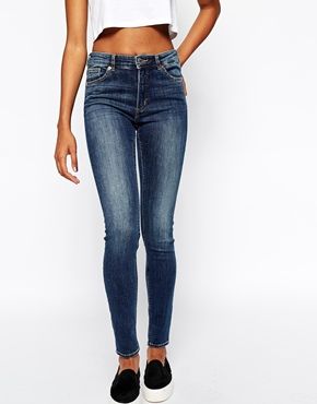 Monki - Mocki - Jean skinny taille mi-haute à délavage moyen - Bleu