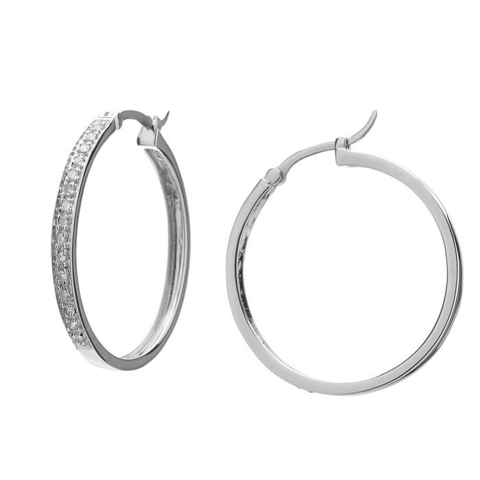 Boucles d'oreilles créoles en or blanc 750/1000 et diamants pour un poids total de 0.15ct. Poids de l'or: 3.8gr.