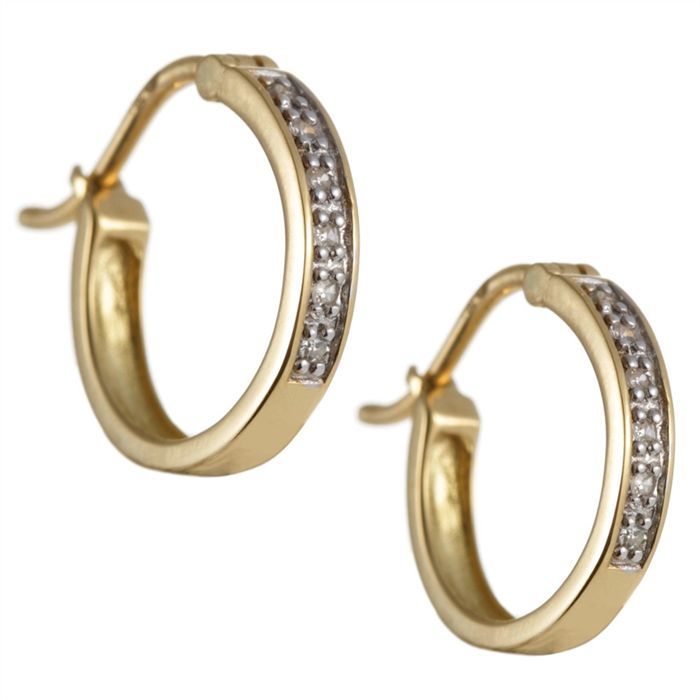 Boucles d'oreilles de type créoles, en or jaune 750/1000 avec pavé de diamants. Diamants blancs de qualité HSI de 0.06 ct. Poids de l'or jaune 18 ct: 1,90 gr