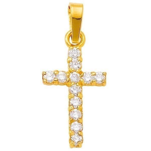 MONTE CARLO STAR Pendentif Croix Or Jaune 750° et Diamants 0.48 ct Femme