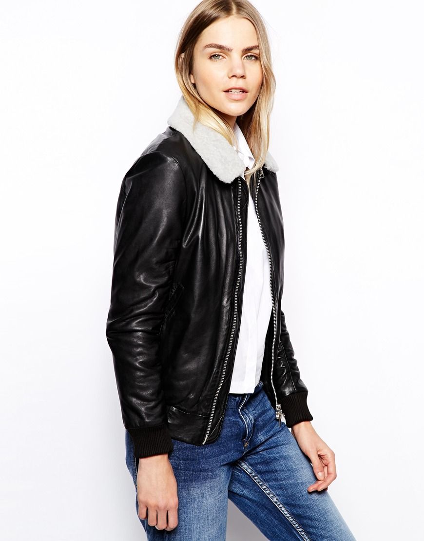 • Muubaa - Lica - Blouson aviateur en cuir à col peau de mouton - Noir