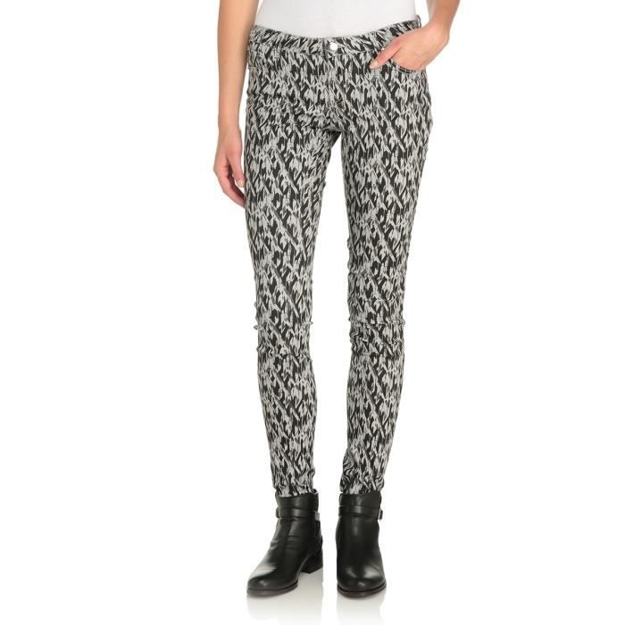 Noir et blanc imprimé fantaisie. Pantalon coton/élasthanne, bouton. Pantalon 5 poches.