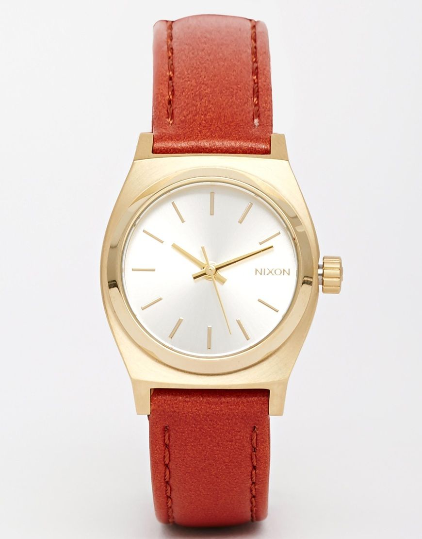 Nixon - - Small Time Teller - Montre avec bracelet en cuir marron - Fauve